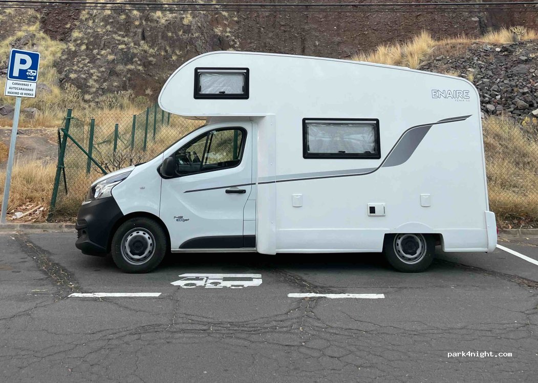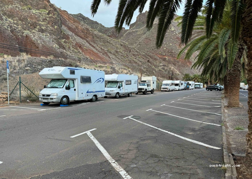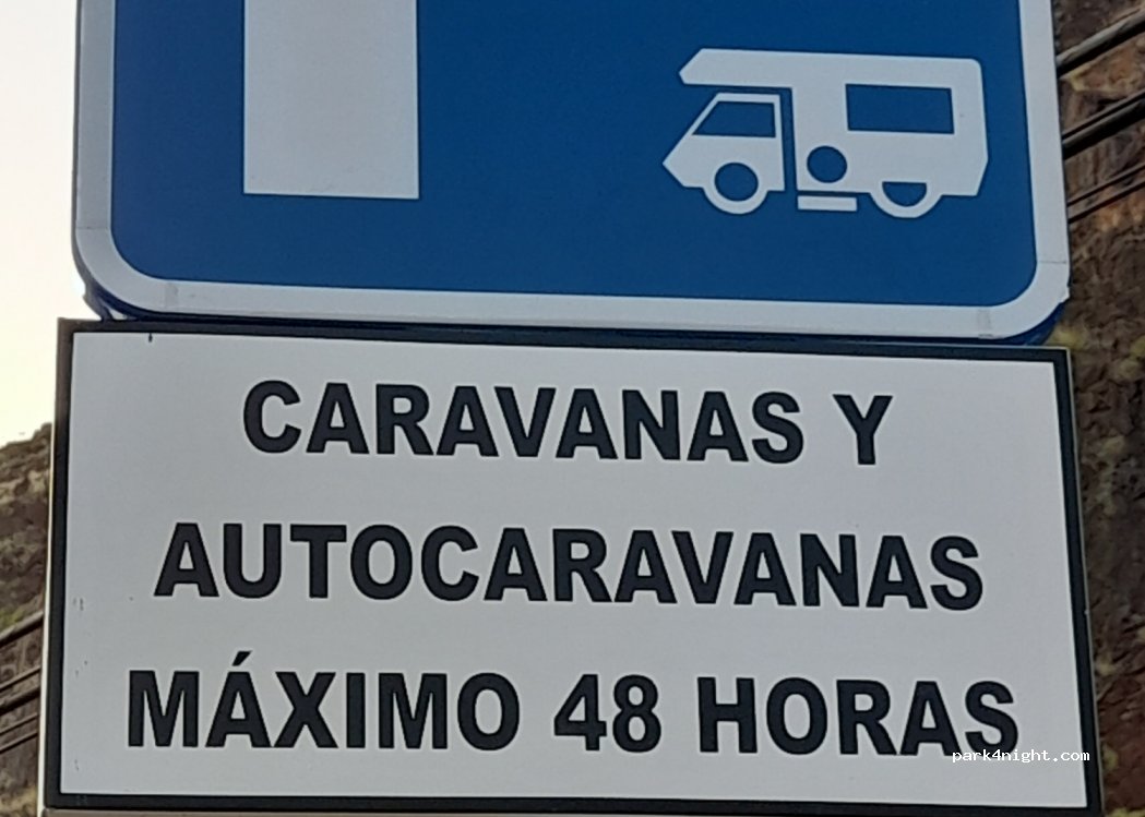 Aparcamiento para autocaravanas señalizado ampio (10m) justo en frente de la playa y chiringuitos, pasamos la noche ahí sin problema, duchas y baños en la playa, pueblo de San Andrés 15 minutos caminando , muy buen y comodo espacio para pasar unos días en la playa