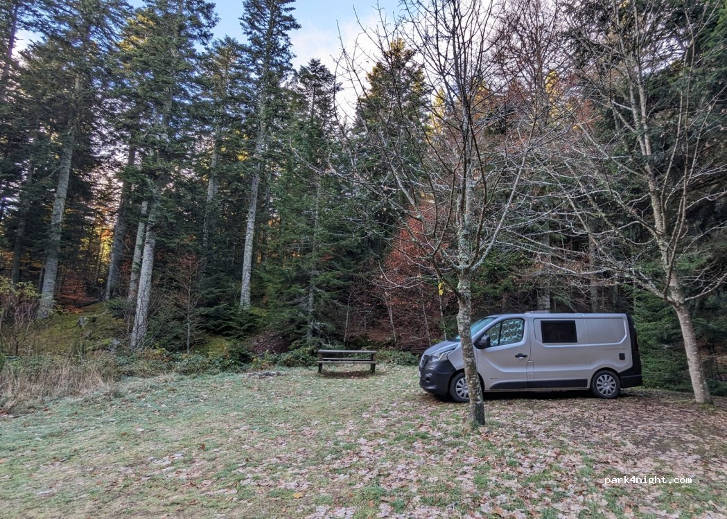 Excellent spot en montagne à 100m de la route via un petit chemin très peu fréquenté (aucune indication ni interdiction), de la place pour 2, une chouette petite rivière en plus. Lieu à préserver, on a ramassé plusieurs déchets sur place...