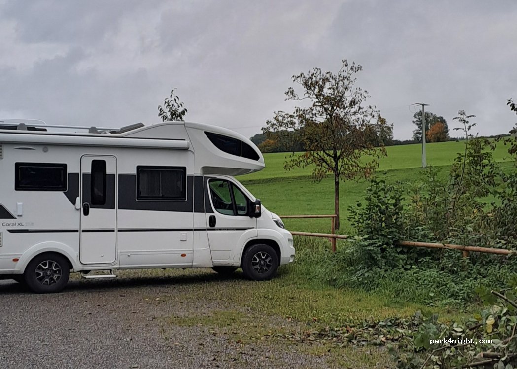 Standen hier für einen Abend und eine Nacht unter der Woche zusammen mit 3 weiteren Campern. Sehr ruhig und man wacht mit dem Blick auf grüne Wiesen oder den Bach auf. Je nachdem, wie man sich hinstellt. Eignet sich super für Kinder - es kommen kaum Autos auf den Parkplatz und auch der Bach großartig zum Spielen ist. Runden zum Laufen oder Radfahren starten direkt am Platz.