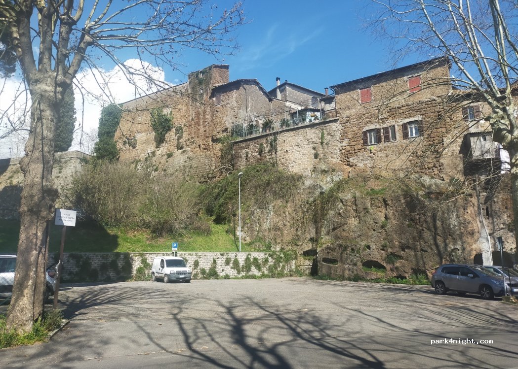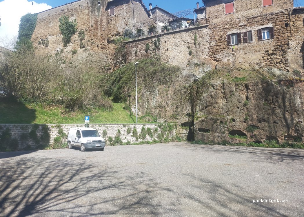 Very good place to sleep. We arrived around 2000 hrs and it was a blessing. Quiet night as very little traffic and a great surprise in the morning. Sutri old town is amazing. Would recommend but in the morning the car park was full so no idea what time it empties itself.