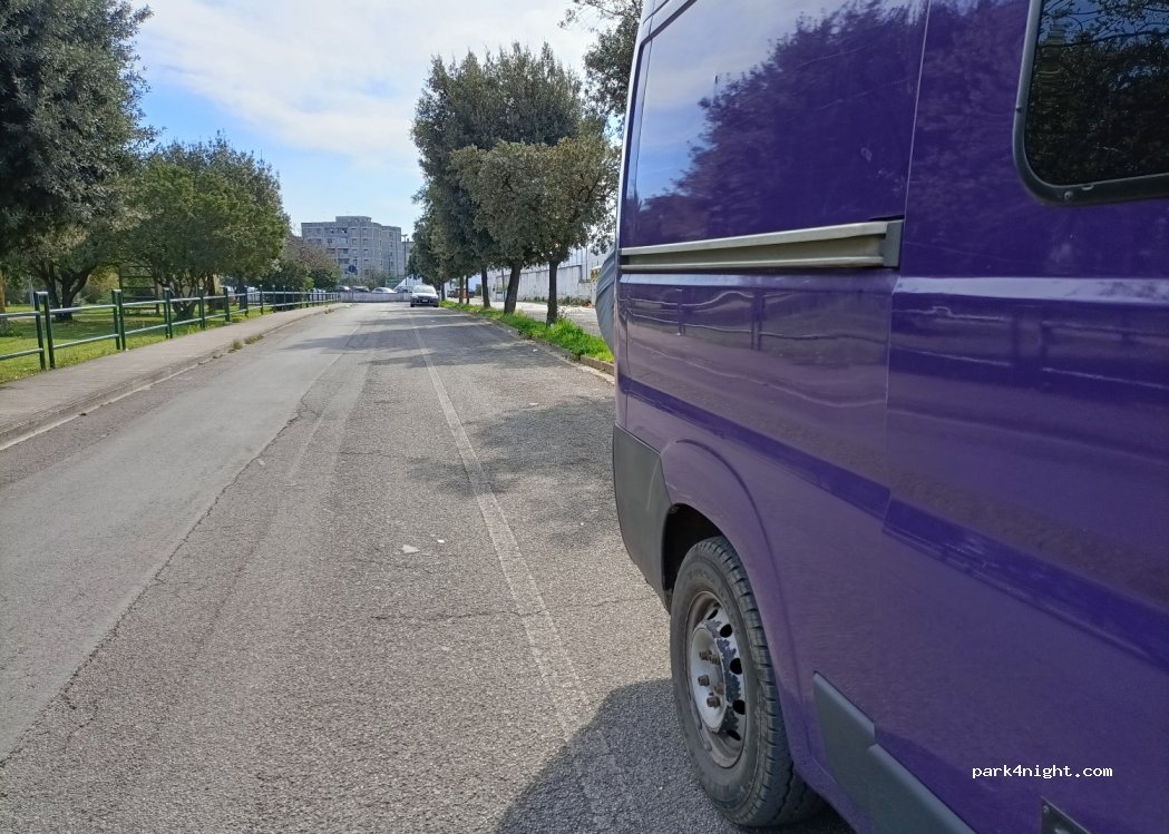 Places de parking gratuites à 20 minutes à pied du centre ville historique d'Ostuni. Facile d'accès. Pas de services. Pas de limitation de hauteur ni de taille. Pas d'interdiction pour la nuit. Tout près du marché le samedi, commerces, petit parc et lockers Amazon à proximité.
