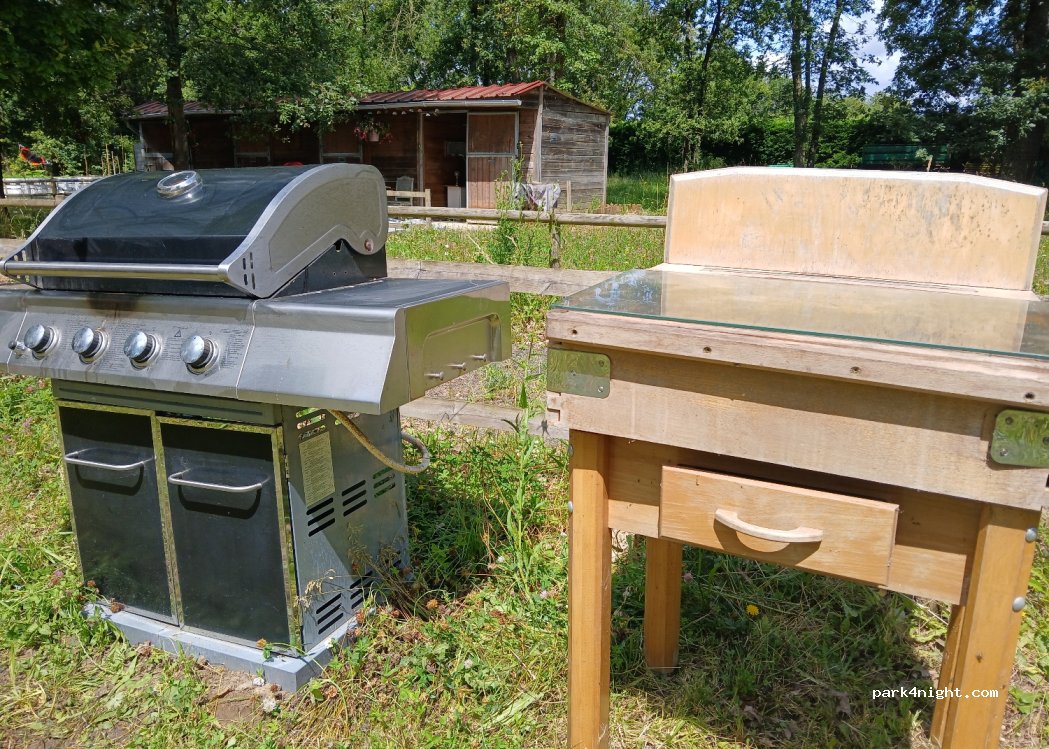 Vous avez à disposition un barbecue, des tables, chaises et un salon lounge pour vous détendre et profiter de notre campagne.