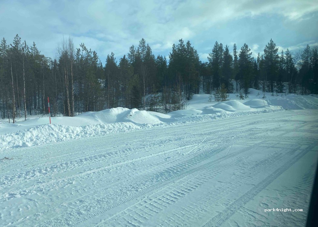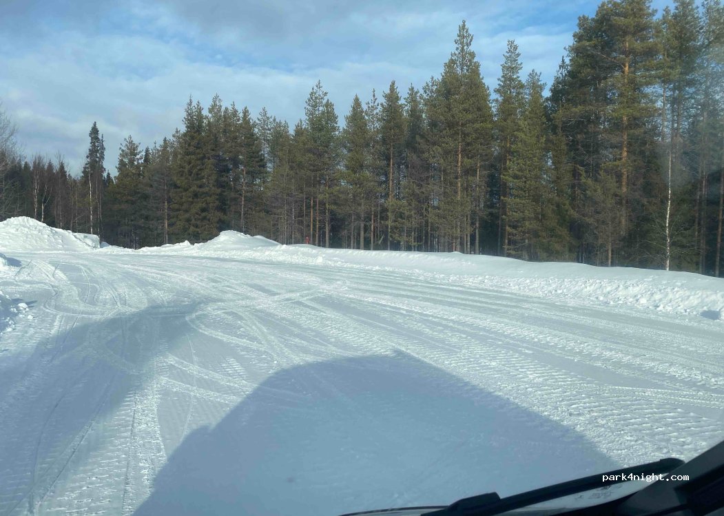 Picnic area with large parking area cleared of snow in winter. Road not very busy but audible. Good 3g/4g reception.