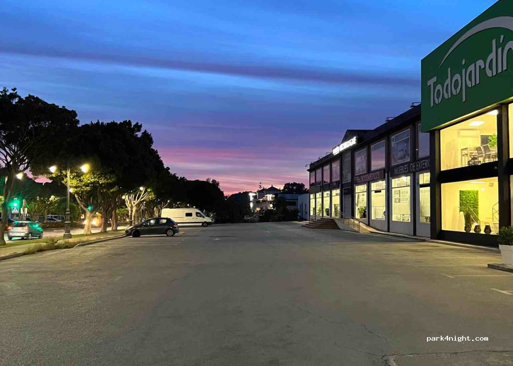 Commercial parking area 2.5 km from the center of Estepona. A 30 minute walk. Nearby there are cafes, the bus station and the Carrefour.