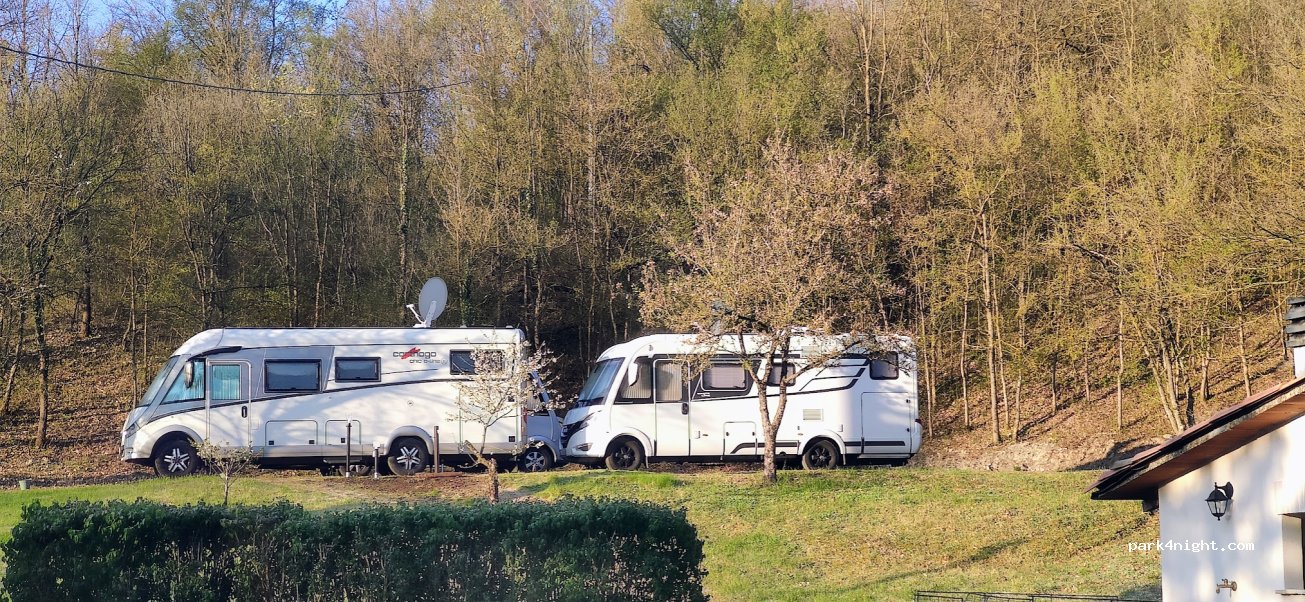 super accueil ce n est pas un camping mais une aire aménagé par les propriétaires avec électricité et eau. reposant et au calme après plusieurs heures de route, petits beignets aux prunes faits par la mamie et discussions conviviales autour d un café. vu les commentaires laissés sur les différents spots autour de Parme on a pas hésité un instant et on a bien fait.
