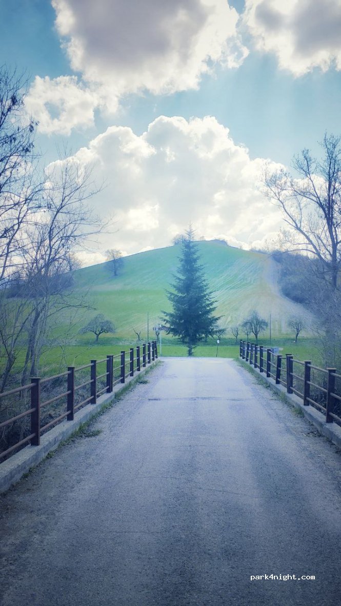 Parcheggio in zona collinare, perfetto per soste notturne e per esplorare la natura circostante. Zona coperta da servizi telefonici.