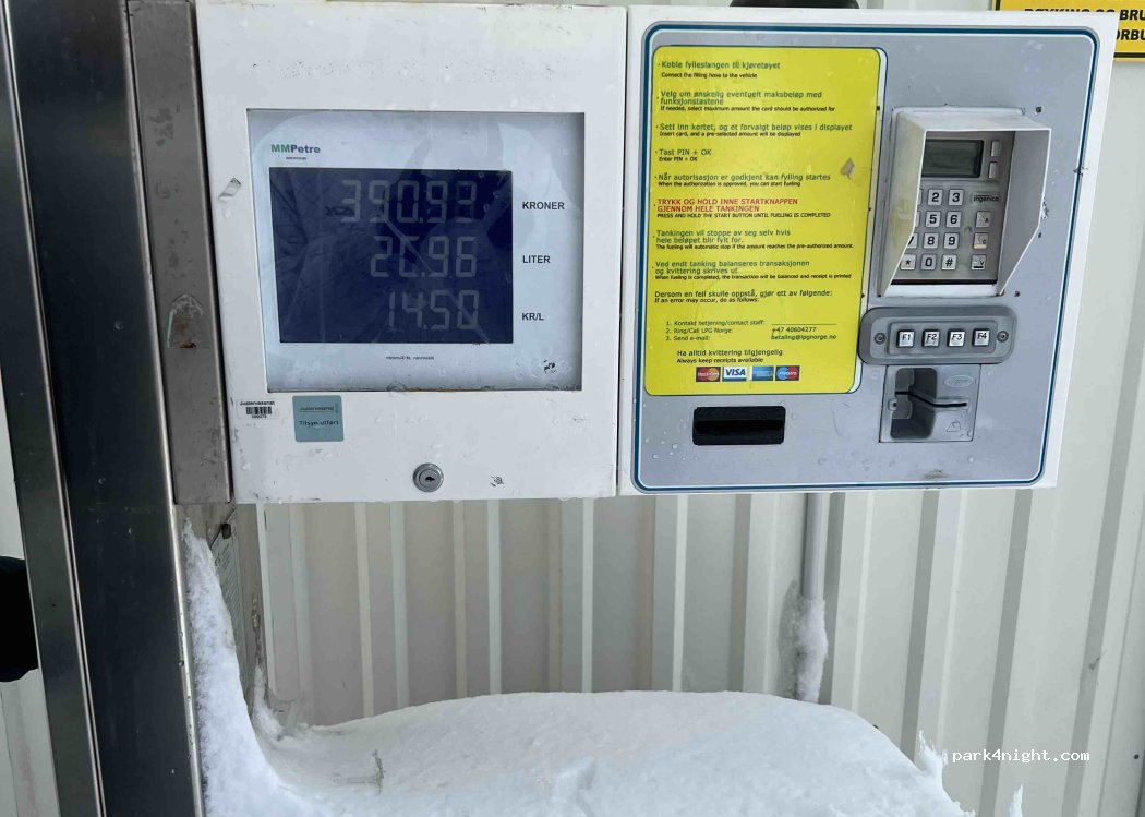 Station-service GPLc 24/7 automatique à carte pour les réservoirs. Pour remplir la bonbonne de gaz, un numéro doit être appelé et un rendez-vous pris. Seule station-service GPL à Tromsø. Prendre en comptes les 14NOK pour entrer dans Tromsø et secteurs, hors heure de pointe de 06:30-09:00 14:30-17:00= 42NOK