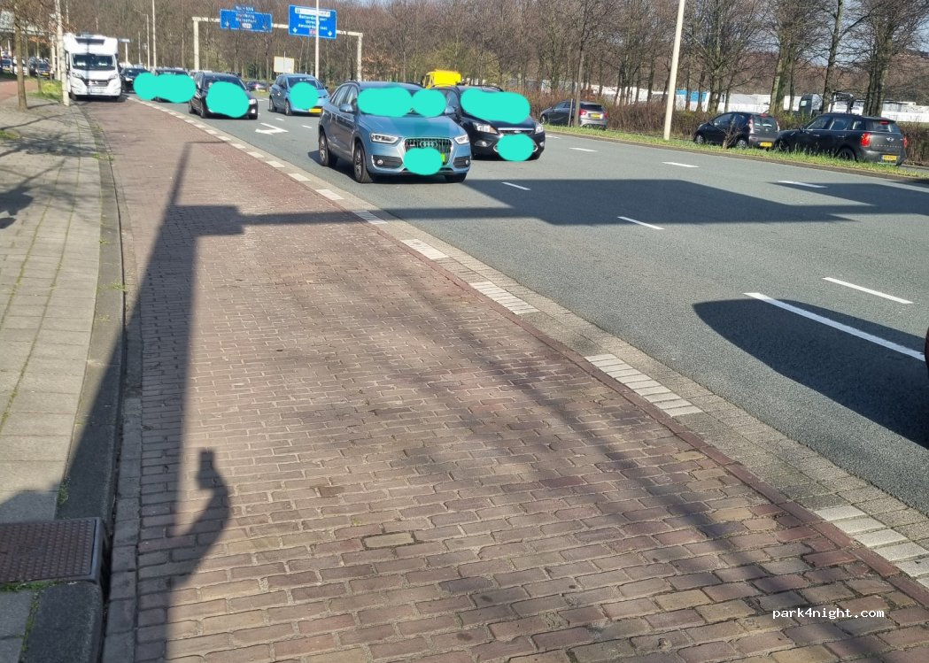 Parkeerplaats op een vierbaansweg. Geen overnachting maar ideaal voor een bezoek aan het stadscentrum. Hele dag hier gestaan. Parkeerzone 2285 (tegen betaling)