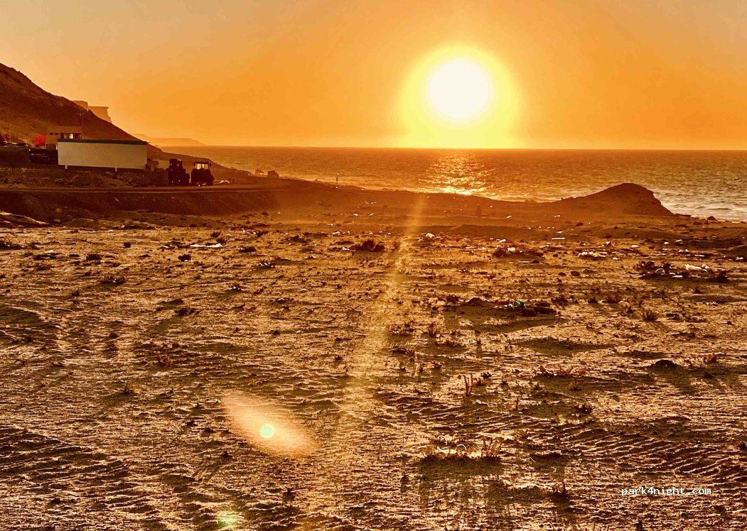 Schöner Spot, gegenüber des Fischmarktes direkt am Strand. Um an den Strand zu gelangen, benötigt man ein bisschen Bodenfreiheit, aber keinen Allrad! Um 20:00 Uhr kam die Gendarmerie Royal und hat freundlich unsere Pässe überprüft und uns einen schönen Abend gewünscht. Am Ende der Straße gibt es ein paar Baracken mit Fischern. Da wir am Wochenende hier waren, haben wir keine Fischerboote gesehen.