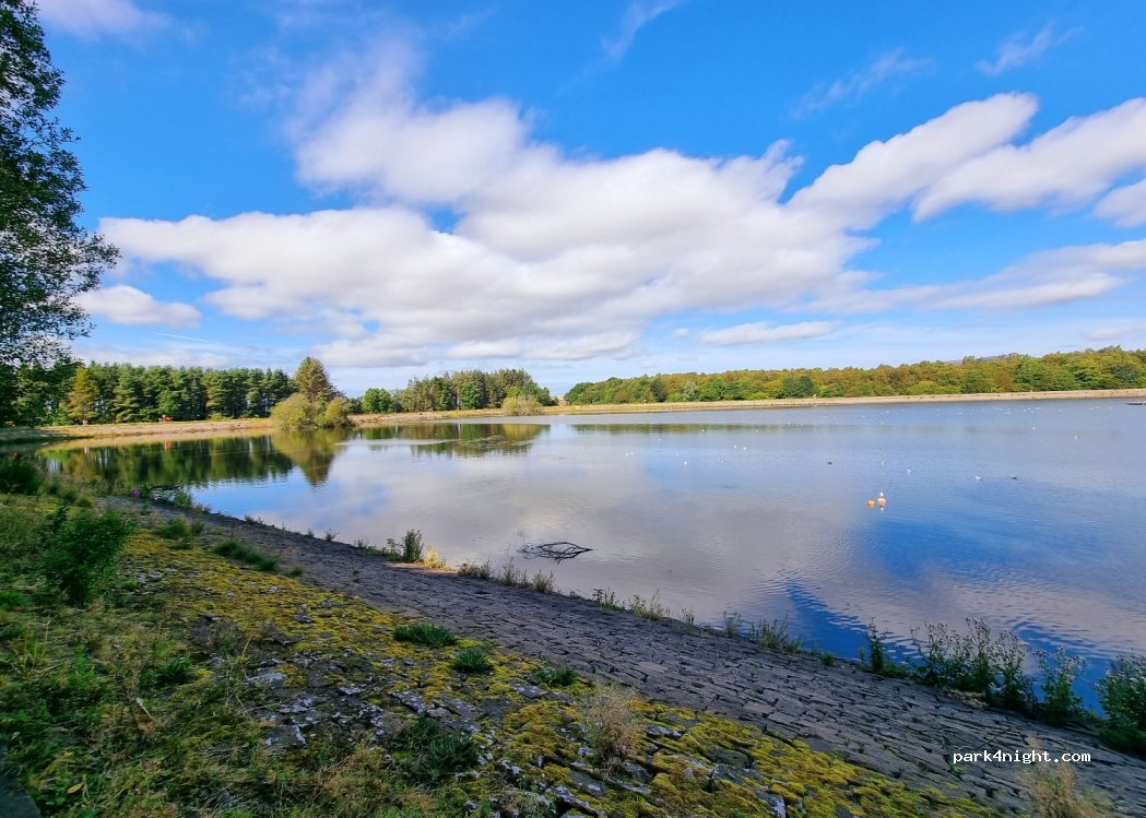 Parking for the Clatto Reservoir walk which leads into Templeton Woods. Good location to explore reservoir/templeton wood on foot/by bike.