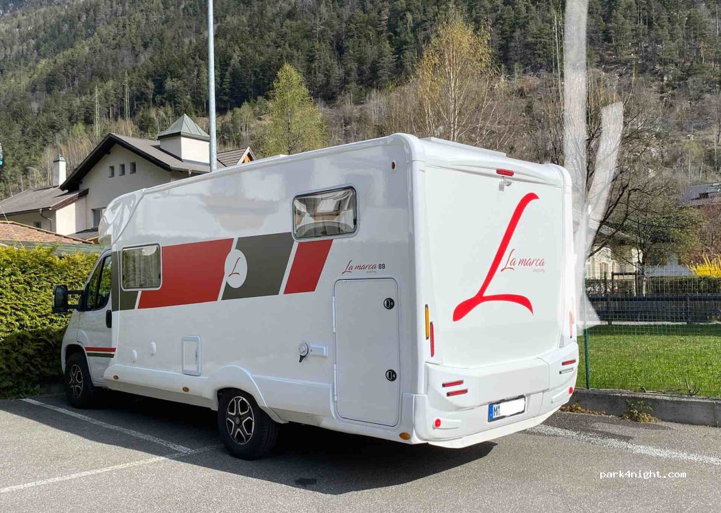 Piccolo parcheggio vicino alla chiesa di St. Martin Mittewald. Abbiamo trascorso un'ottima notte lì mentre andavamo in Italia. L'autostrada A22 è piuttosto udibile, altrimenti silenziosa. Attenzione, c'è un limite di altezza ufficiale di 2,20 m.