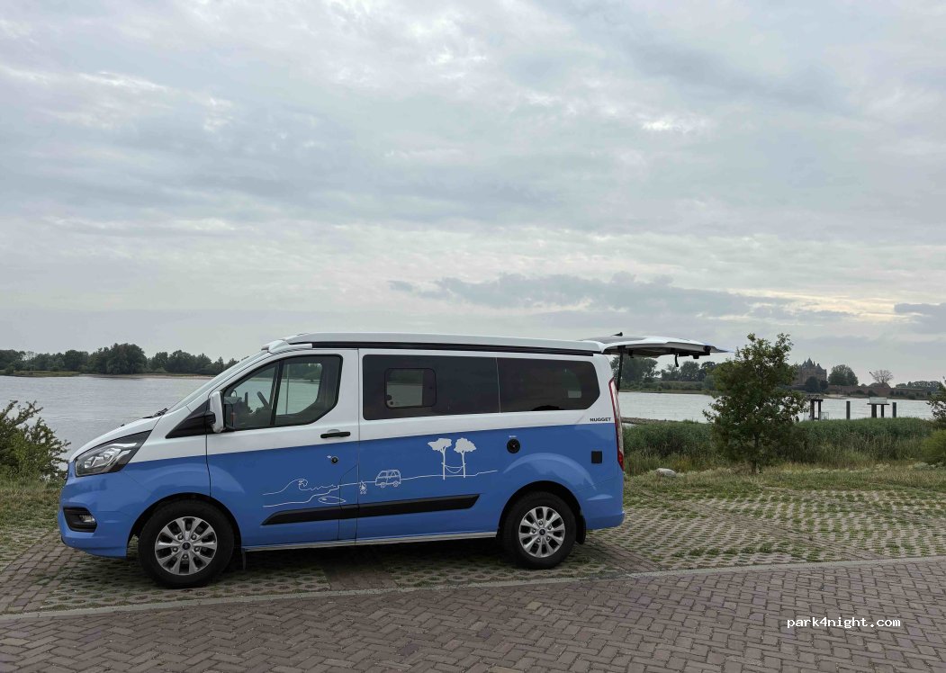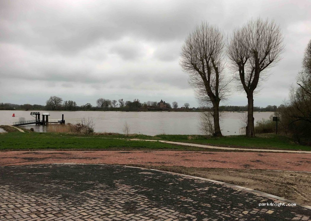 Fijne plek om te overnachten. Of het daadwerkelijk is toegestaan? Dus op eigen risico. Zorg aub dat je vuil zelf mee neem want de bakken zijn overvol. Prachtig uitzicht over de Waal en Slot Loevestein. En naast fort vuren. En zijn werkzaamheden aan de dijk. Houd daar rekening mee.
