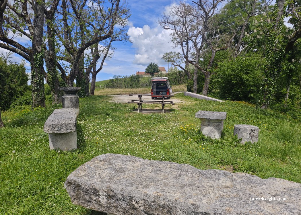 Merci à la ville pour ce spot très sympa! Belle vue table de pique nique et s’il gravillonne!! Nuit calme, quelques passages de voitures ms très calme par ailleurs!!