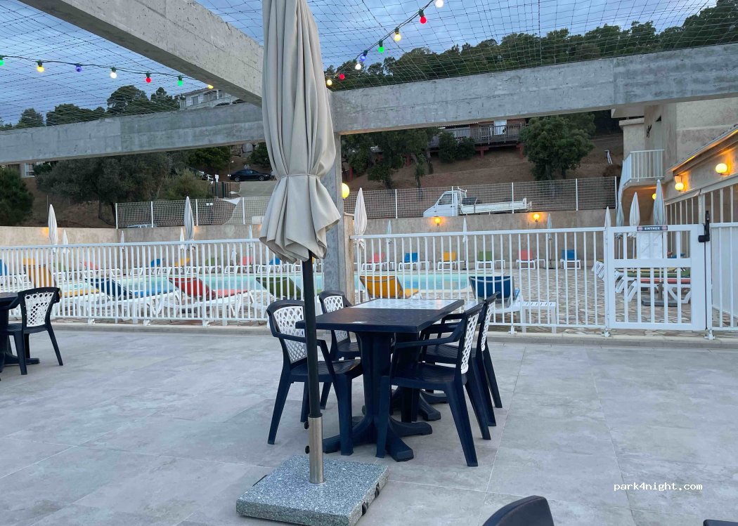 Wonderful campsite. High above the road. Shady. Everything is clean. The swimming pool is excellent and very well maintained. Sufficient relaxation for everyone. Wifi at the restaurant next to the swimming pool. I recommend. 100m from the sea.