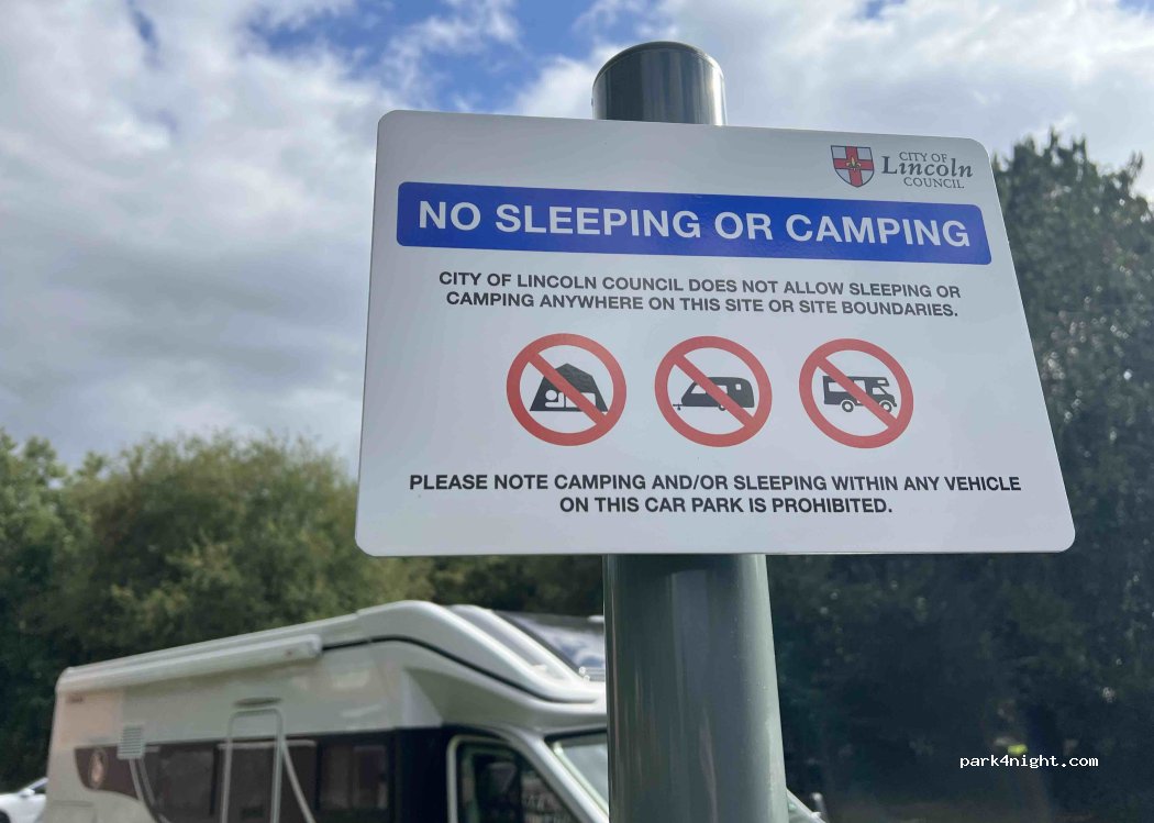 This is a good place to park to visit Lincoln. there's a riverside path all the way into the center from the park, about 30 mins walk. We stayed one night no problems.