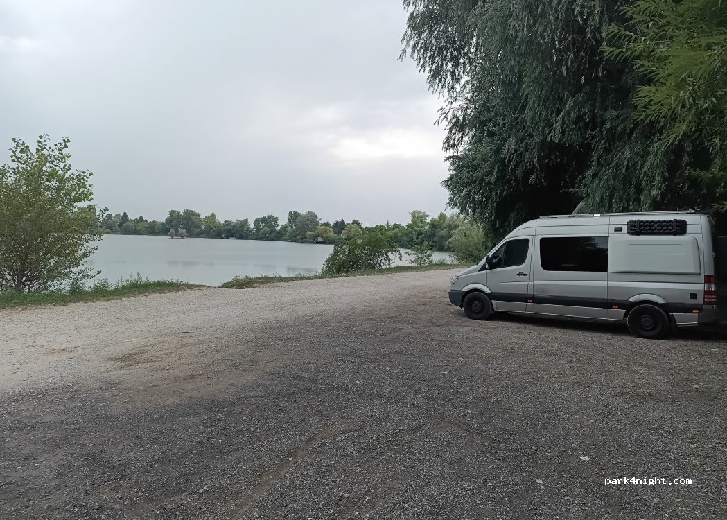 Un endroit calme et propre au bord du lac, pour une halte de l'autoroute. Convient également aux grands camping-cars.