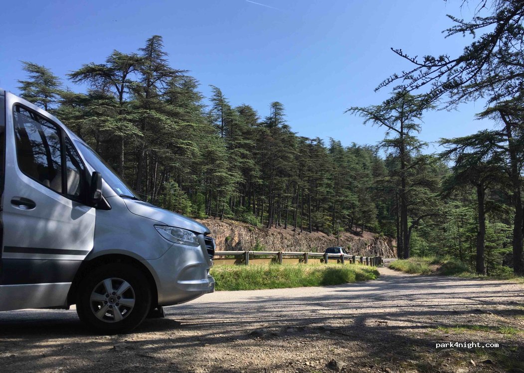 Parking au bord de la route très peu fréquentée. Pas de commodités, mais loins de la ville et n’avons pas été dérangé .