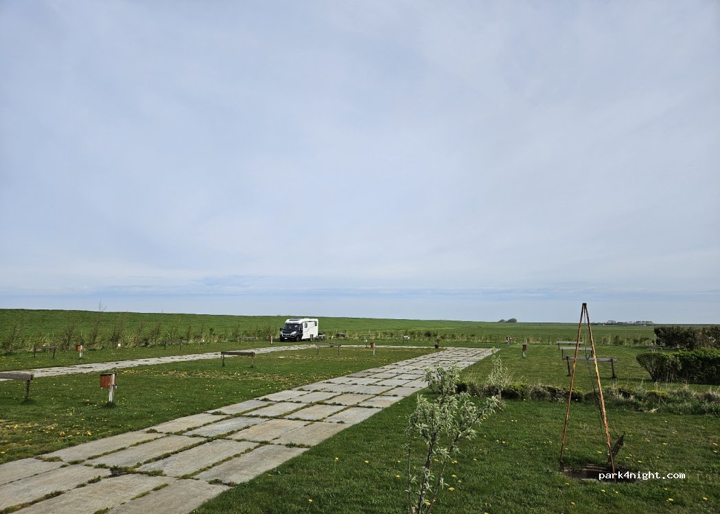 Freundlicher Bauer+ruhige, idyllische, sehr abgelegene Lage zwischen beiden Deichen. Natur pur. Saubere, gratis Sanitäranlagen. Platz inkl. Strom. Nachts stockduster, kein Licht. In der Nebensaison waren wir die einzigen, das war schon etwas gruselig. Super Preis (1 Nacht,2 Personen+Hund 24,60€). Wir kommen gerne wieder.