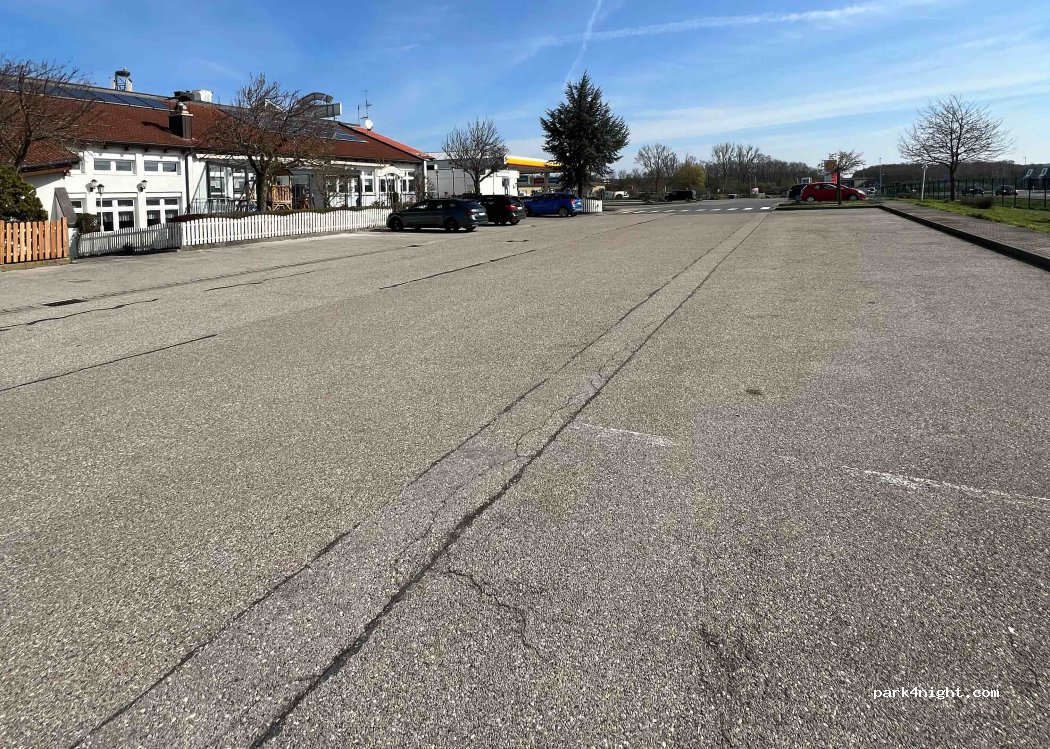 Hier gibt es einige Parkplatze für PKW & Wohnmobile. In der Nacht fahren an der Straße einige Autos vorbei, daher kann es schon etwas lauter sein, uns hat es nicht gestört und wir konnten ruhig schlafen. Nebenan ist eine Tankstelle und ein Landgasthof. Letzteres bietet Duschen, Toiletten und Waschmaschinen. Essen und trinken kann man dort auch gut.