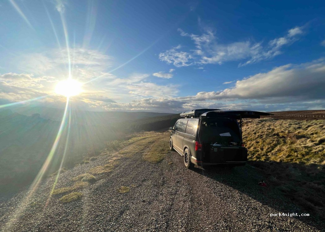 Ein toller Platz ganz weit oben. Keine Bäume. Blieben hier für eine Nacht. Es hat geregnet und gewindet. Ein tolles Gefühl. Abends kamen ab und zu Autos vorbei. Aber es ist ein ruhiger Platz. Man kann zwei Wanderungen von hier starten. Viele Hasen und Schafe in der Nähe. Kein Mülleimer.
