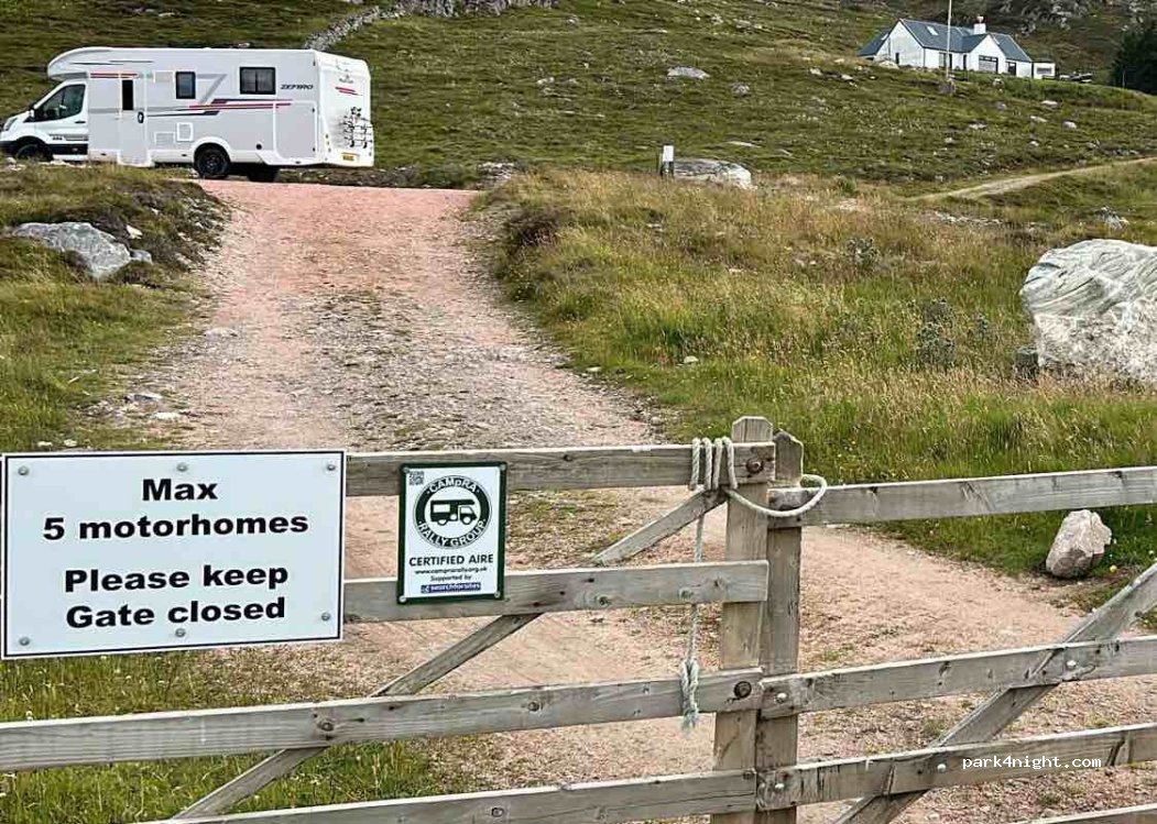Gates were tied shut. Multiple overnight aires available on the route to Durness