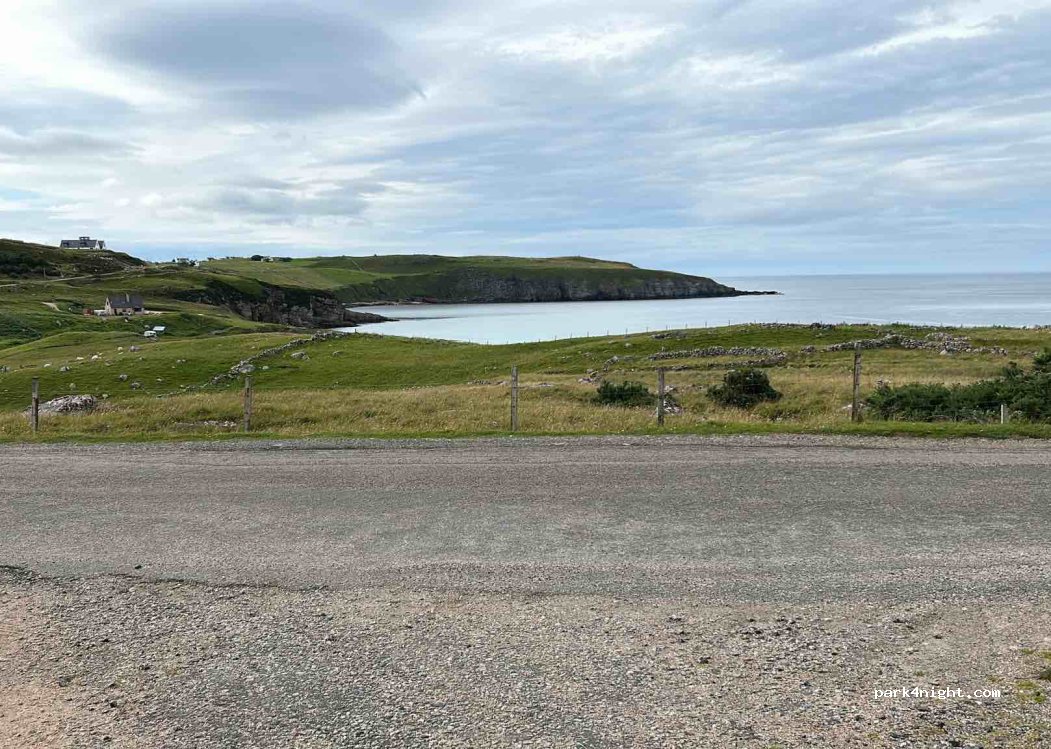 Hard standing area created by a local. Honesty box. Great view. No amenities (public toilet 2 minute drive up the road). Enough space for 5 motorhomes. Dry basic, but set back enough from the road. View is really good.