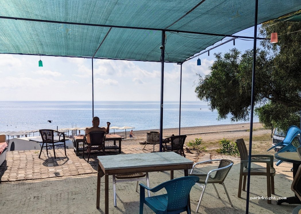 Very nice camping side on the beach. everything is fine. clean and tidy. Electricity, water, toilet etc. is possible and all in order. Owner is very friendly and handsome very nice persons, also very helpful for any needs like shopping etc., payed 400tl per night including electricity and water, we love tis place and for sure we will visit on next vacancy.