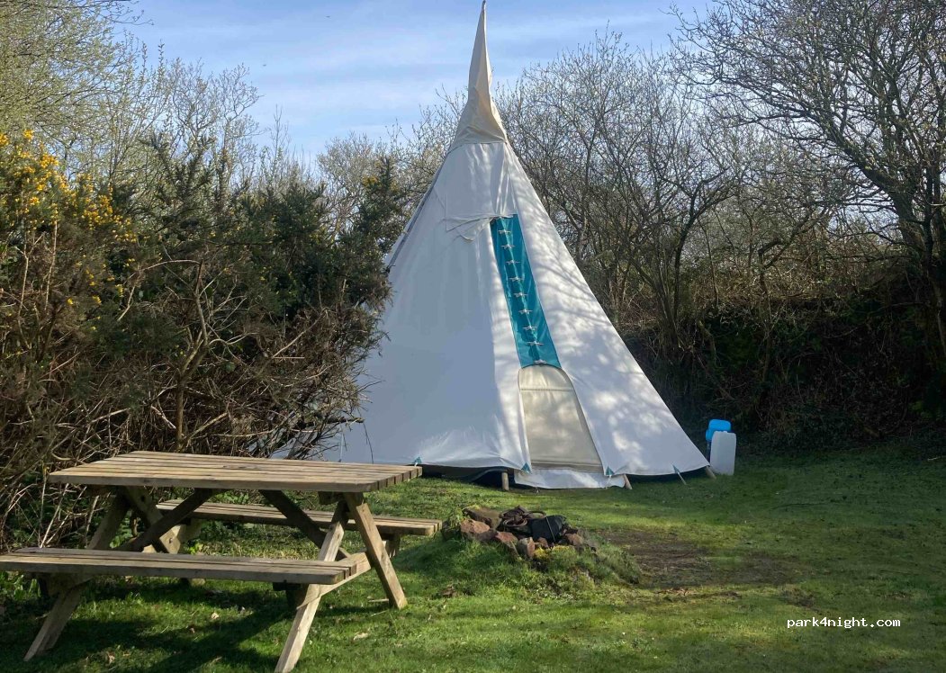 Cornish Tipi Holidays is a wild camping paradise nestled in the woods with a private lake. Lots of secluded private camping spots and festival themed field camping for tents and vans. Offers a nice sunny Campervan area. Lots of Tipis to rent out for minimum 2 nights that have all camping essentials inside. Flushing Loos and compost loos available with hot showers. Beautiful Lake on site where you can swim and kayak and go fishing for free for trout! Fire pits available across site with logs/kindling for sale at reception. Very child friendly with loads of space to explore. Great welcoming and helpful staff. Definitely worth the money! Cool cafe called the Gastropod (open to all) that’s open during busier periods - currently open on weekends for brekkie and Friday Night Wood fired Pizza! Check it out ?