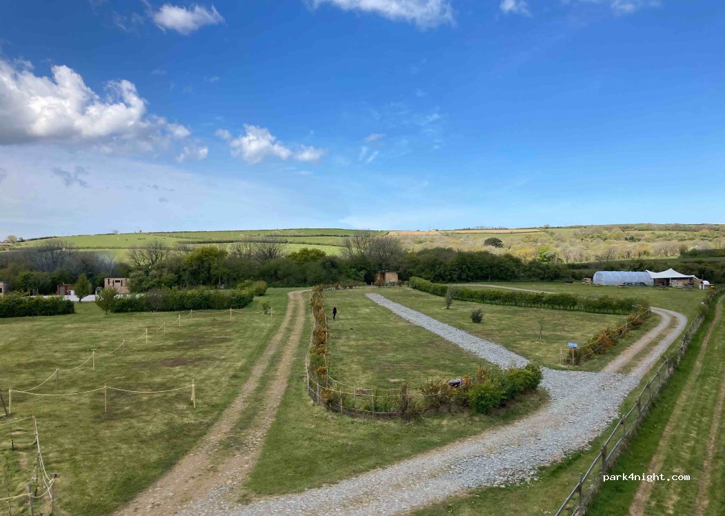 A great quirky campsite situated just off the B3314. A woodland to explore and a secret lake to swim in. Tipis available, tents and campervans welcome. Hot showers, washing up stations, flushing & compost loos. A fantastic cafe on-site. Nearest beach 10 mins drive. Co-op in nearby Port Isaac (10 min drive) which also has pubs, shops and cafes.