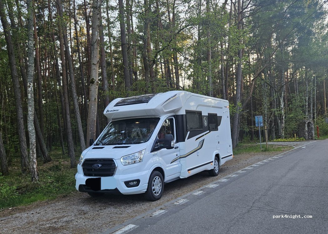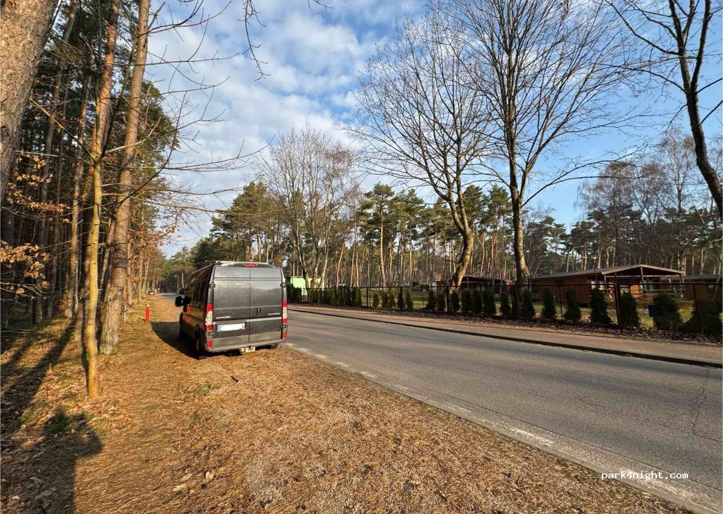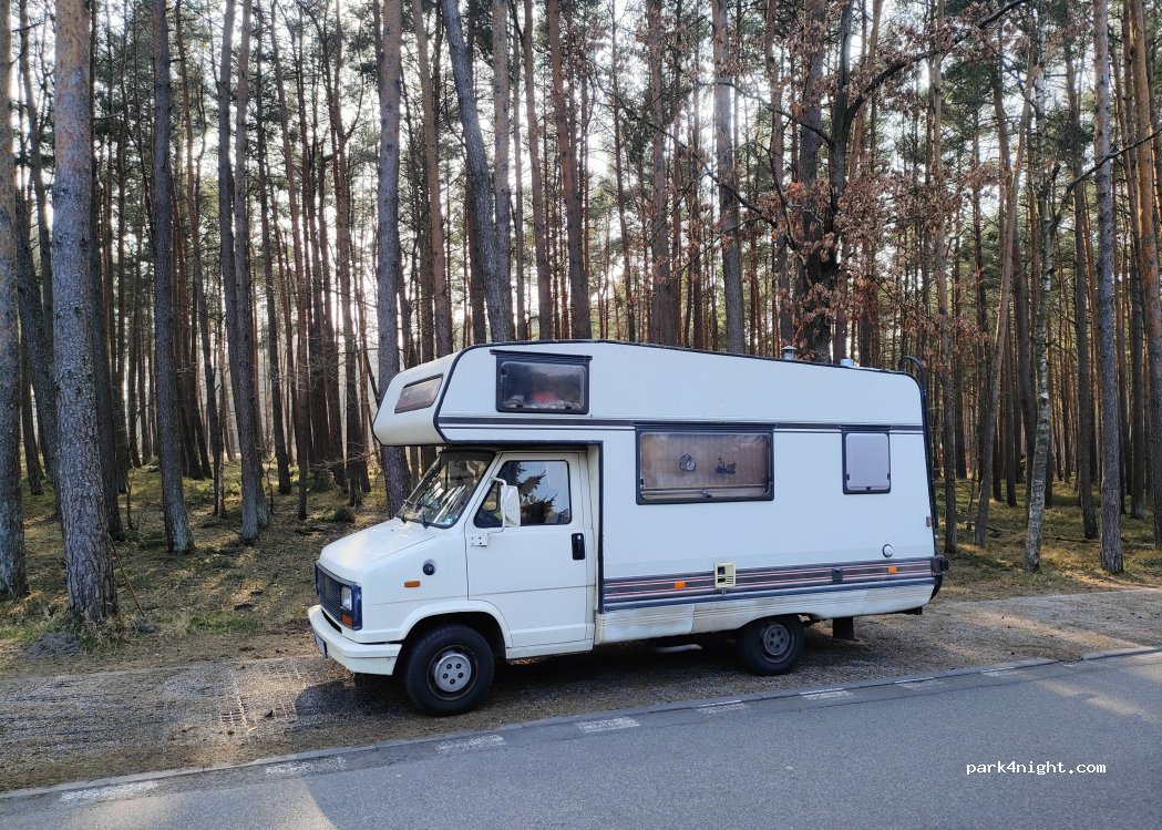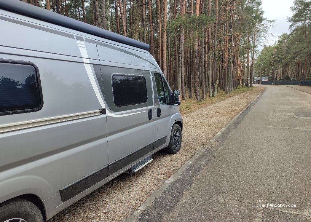 Parking miejski wzdłuż drogi prowadzącej do plaży. Płatny poniedziałek piątek od 8 do 20. doba 30 zł 1 godzina chyba 4,40. chodzą kontrole w dzień. Z jednej strony campingi z drugiej ładny las. W dzień duży ruch pieszy, samochodowy niewielki. po zachodzie słońca cisza i spokój. Spałam dwie noce bez problemów. mieszczą się duże kamery i auta z przyczepami