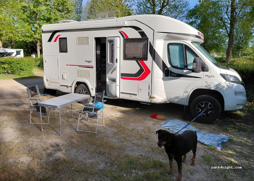Séjour pendant le week-end de pâques. Endroit calme, nous n'avons pas entendu de chien (peut-être avons nous eu de la chance) Emplacements spacieux, aire propre, service eau, électricité OK. Attention tout de même aux emplacements au bord de l'eau très humide. Le fond du parking était inondé ce lundi 1er avril ! La TV ne passe pas à certain emplacement.