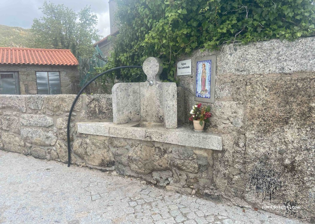 Water tap can be easily approached with campers. According to the label, it is not controlled drinking water. According to information from the villagers, it is spring water. Here in town water is bottled and sold. Nearby behind the sports bar it has a gray and black water disposal.