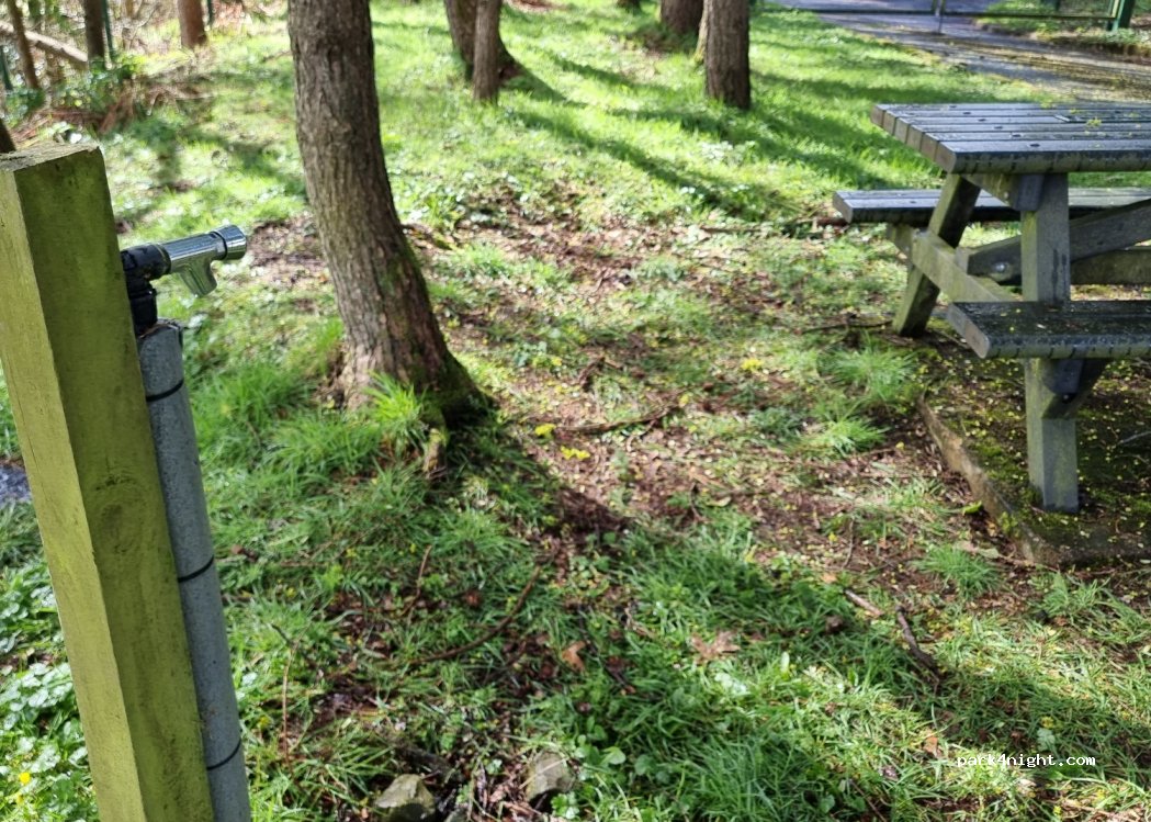 Drinking water tap by the picnic bench in the furthest corner of the car park of the Ulster American Folk Park