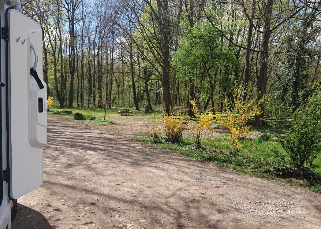 Nachts ruhiger Picknickplatz, 300 m von der Hauptstraße entfernt, neben einem Sportplatz.