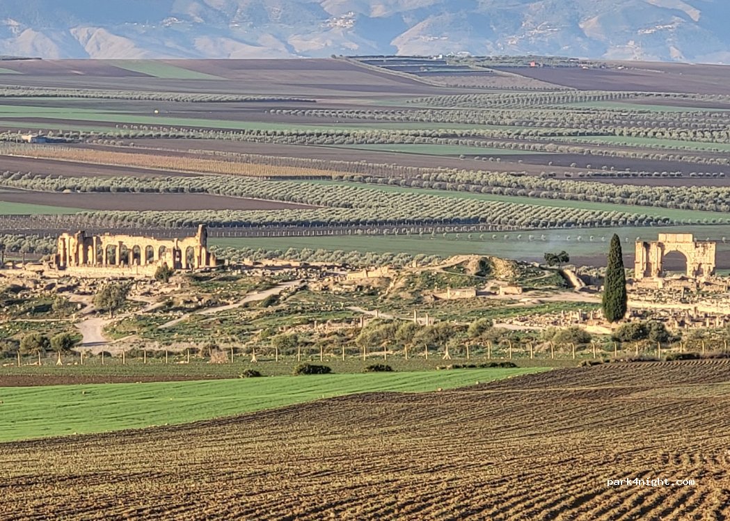 Sitio muy tranquilo para pasar la noche cerca de las ruinas romanas de Volubiliss. Posibilidad de coger agua