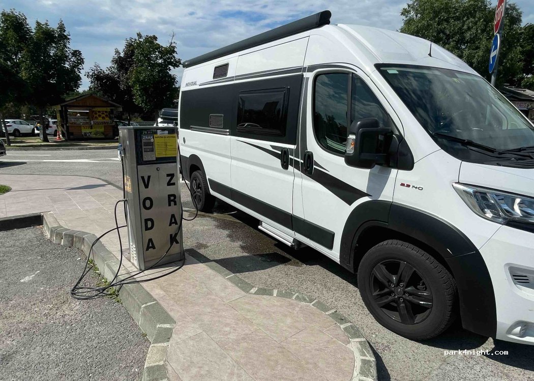 Rest area with gas station and Burger King and Marche. With free drinking water and ample parking space. Overnight stay should not be a problem for transit.