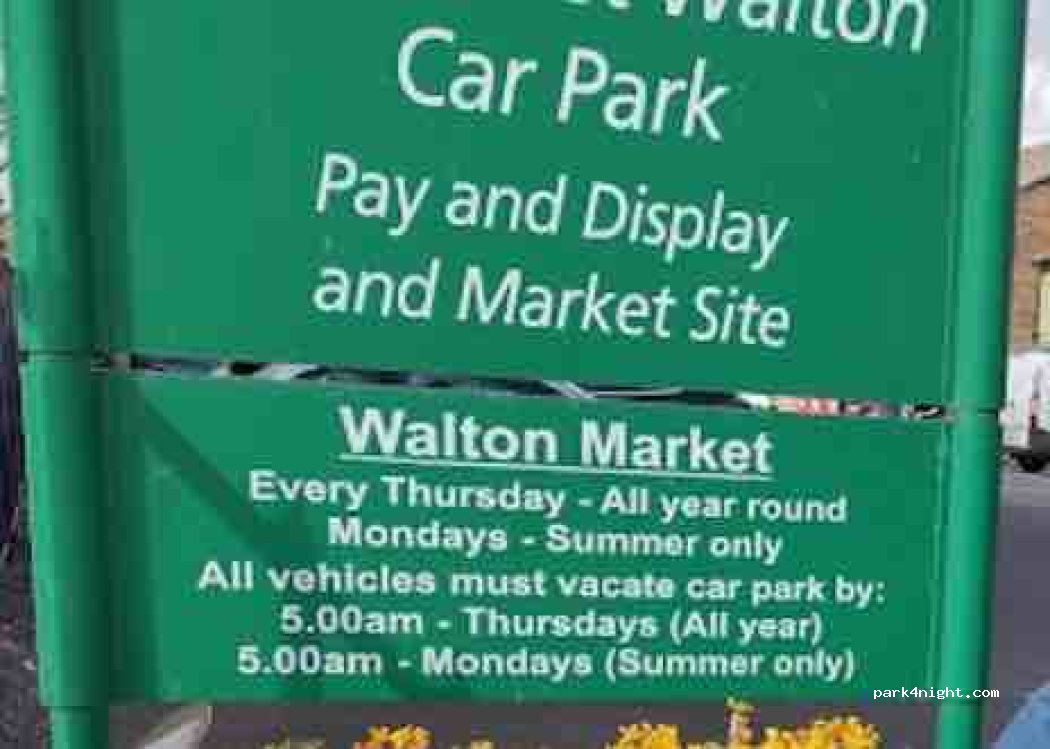 This car park has restrictions for market days but otherwise no signage I could see for no overnight stays. It’s right by the seafront so lots of facilities near by. Directly behind a co-op.