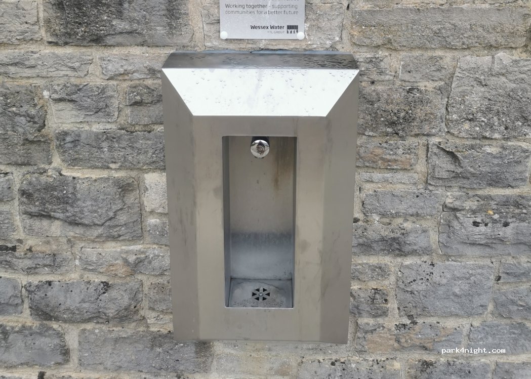 Prima vul plek voor water. Op de parkeerplaats erachter mogen alleen maar campers van max 4,8m staan. Wij parkeerden voor het toiletgebouw en sloten een waterdief aan op de tap. Je moet geen haast hebben.