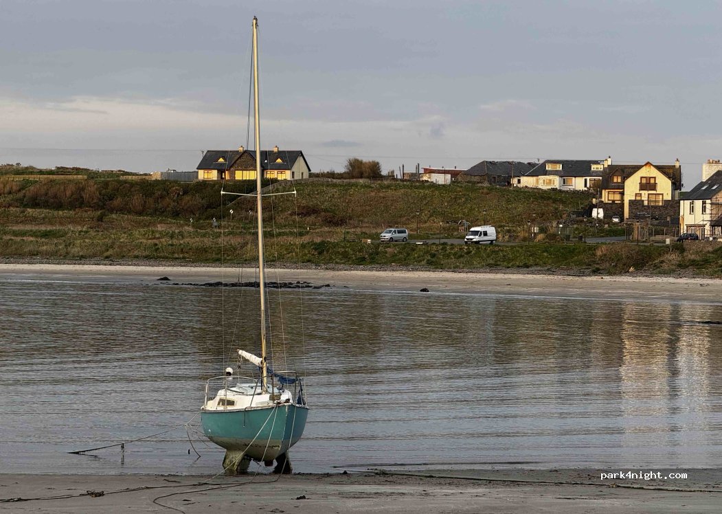 Très belle endroit et aucune interdiction table de pique-nique belle vue sur la mer d’Irlande et une bonne nuit bercé par le bruit de la mer seul CC a cette période ne pas déranger les habitants en laissant le terrain propre