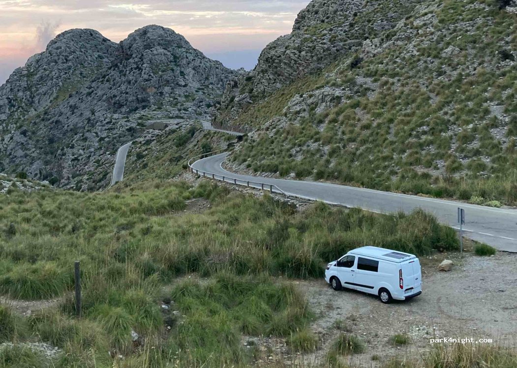 bien pour une nuit mais au sommet du col donc avec du vent. 8° le 23/04 à 20h... peut être descendre et se poser au dessus cala Tuent hors saison . pas de WC ni d eau van et CC ok. idéal pour faire le col en vélo