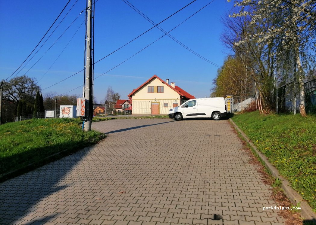 Parking 5 ou 6 voitures en légère pente à côté du stade. Aucune commodité. Nuit calme malgré la route à 50m en contrebas.