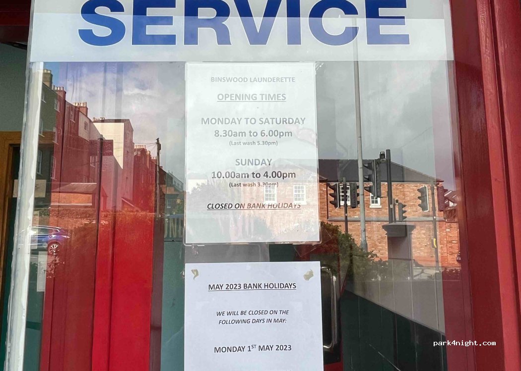 Binswood Laundrette located in a small parade of shops. Plenty of washing machines and tumble dryers with also the option to have a service wash. Large parking bay at the front with 2 hr waiting limit. Mon-Sat 8.30 am-6pm. Sun - 10-4.