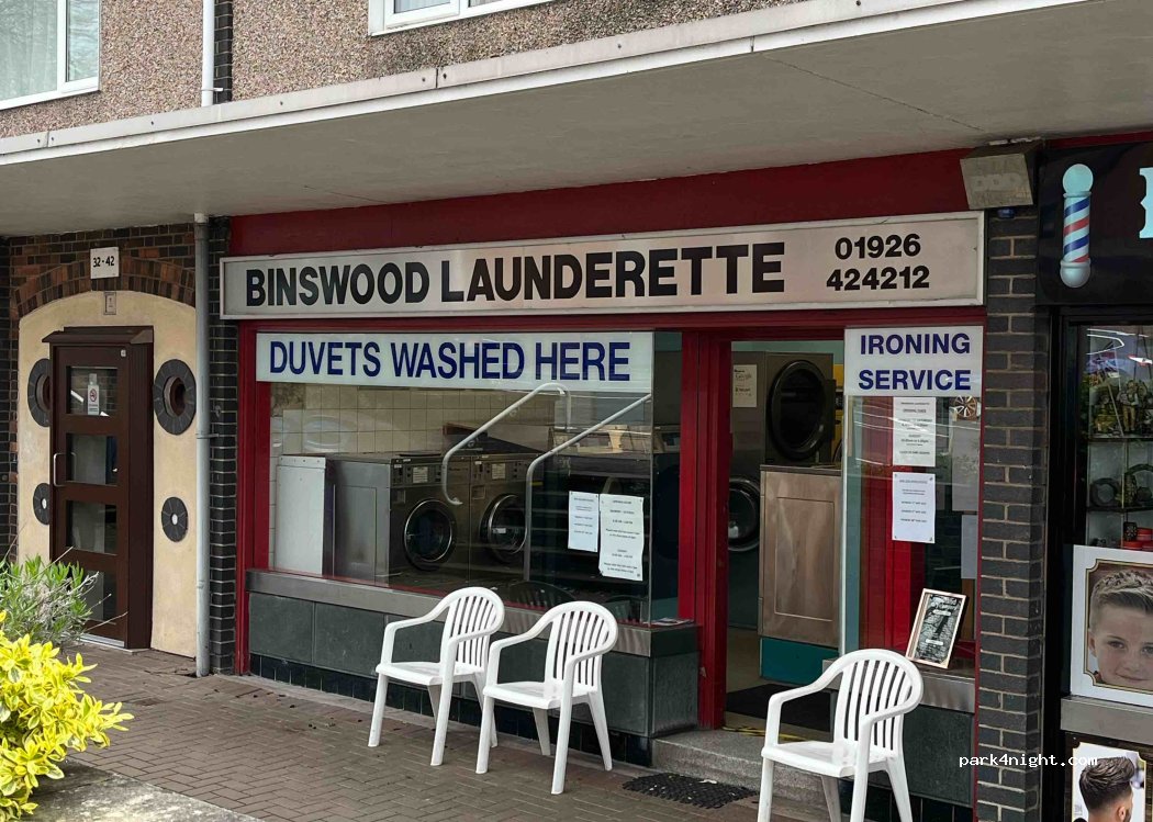 Binswood Laundrette befindet sich in einer kleinen Parade von Geschäften. Viele Waschmaschinen und Wäschetrockner mit der Möglichkeit, eine Servicewäsche zu haben. Großer Parkplatz an der Vorderseite mit 2 Std. Wartezeitlimit. Mo-Sa 8.30-18 Uhr. So - 10-4.
