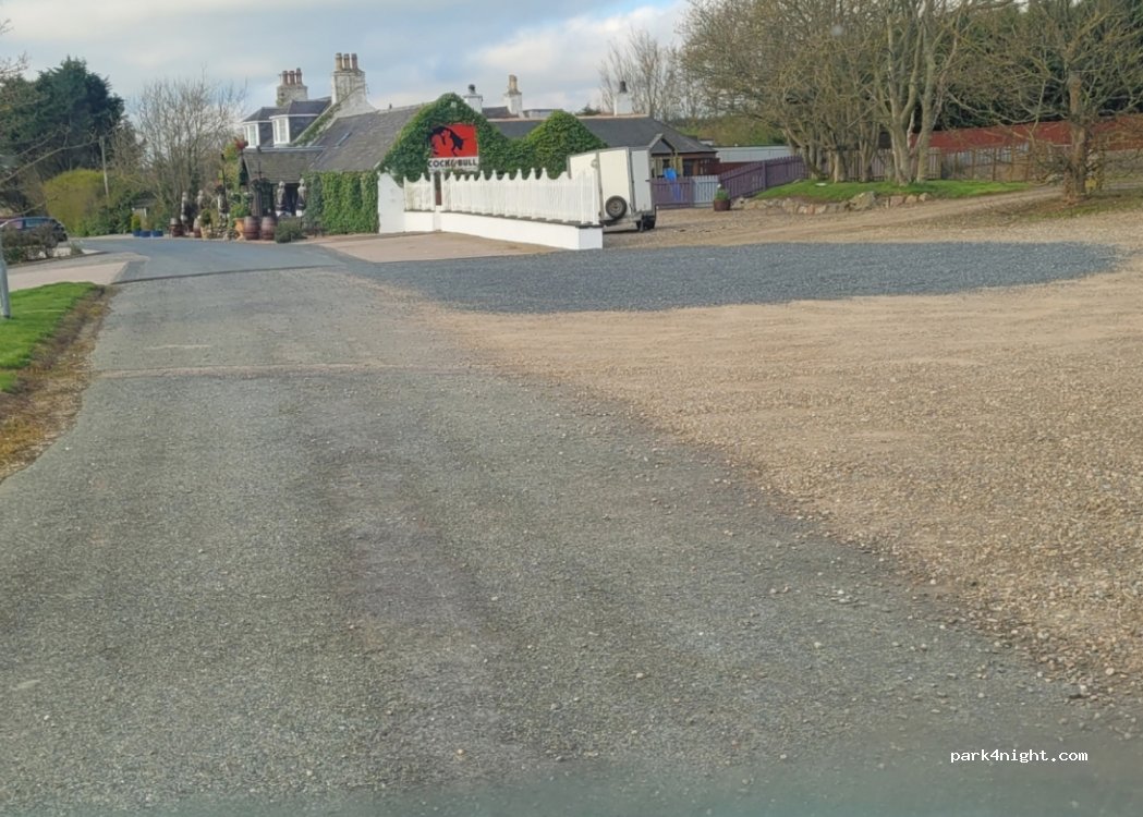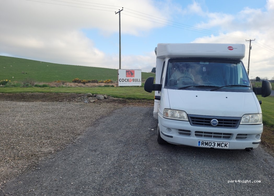 Cock & Bull Inn avec un grand parking qui permet aux camping-cars/campeurs de passer la nuit si vous y allez pour un repas ou un verre. Pas d'installations mais peut utiliser les toilettes lorsqu'elles sont ouvertes. Chien amical et nous avons passé une nuit de sommeil paisible.