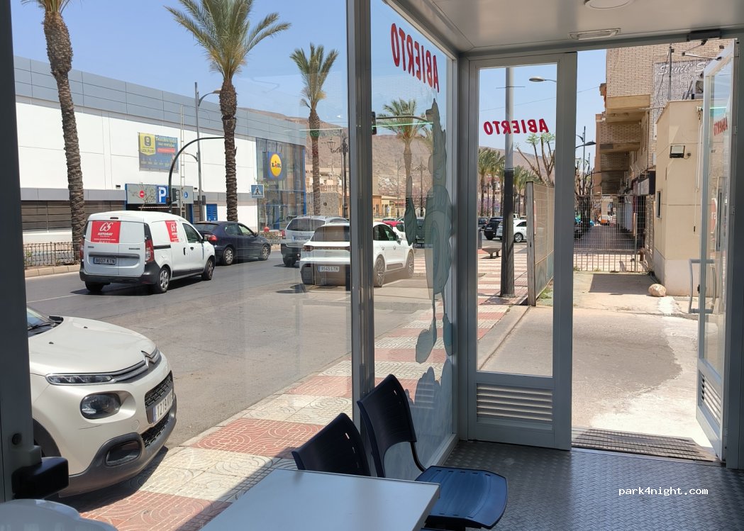 Dahinter kann man gleich das Womo waschen und genügend Platz zum warten mit dem Womo an der Waschanlage war auch. Endlich mal ein eine Lavandería ( Waschmaschinen können nur mit 1€ Münzen bedient werden ) wo man entspannt mit dem Womo hinkommt. Danke an den Betreiber!