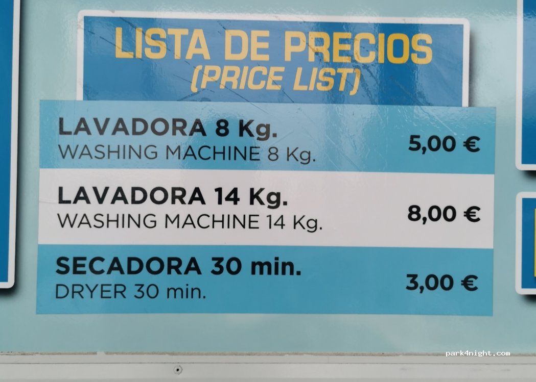 5€/8kg - 8€/14kg/washing 3€/30min/drying