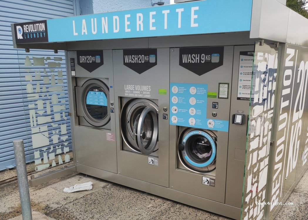 Laverie automatique : 2 machines à laver 9kgs, 2 machines à laver 20kgs, 2 sèche linge 20kgs.