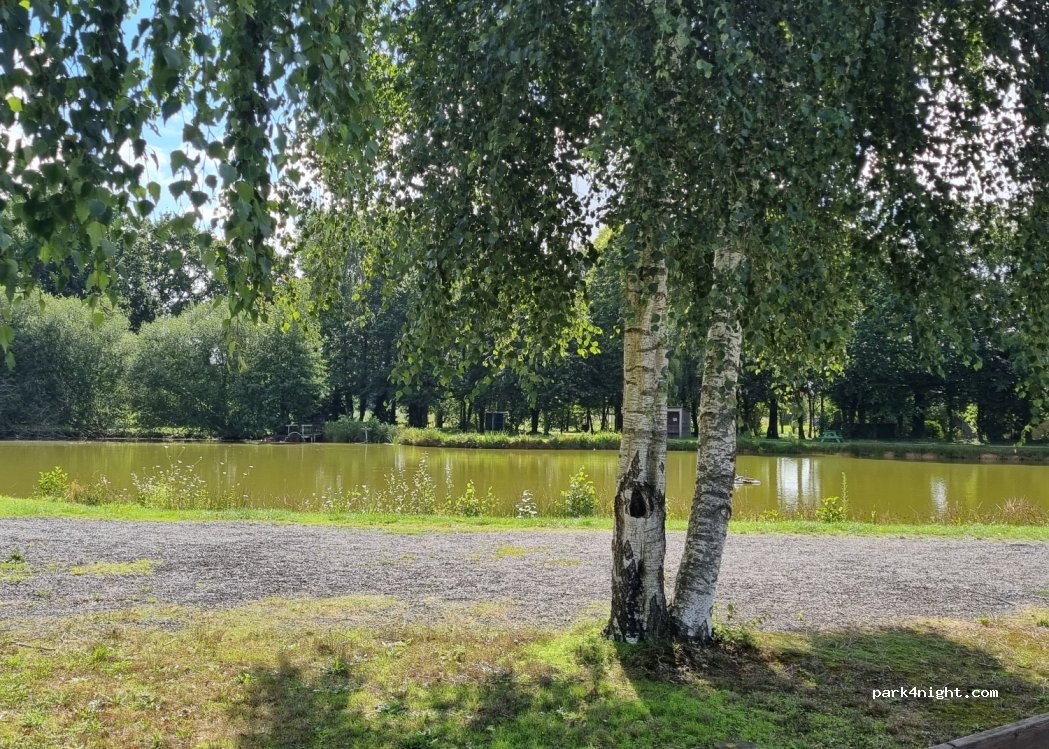 2 emplacements un peu en retrait de la route.le reste du parking pour les pêcheurs. agréable calme à côté d'un petit étang barbecue et aire de jeux neuve . sanitaire propre. différents chemins de marche.avec une zone reserve naturelle. merci beaucoup à cette petite commune de nous accueillir.