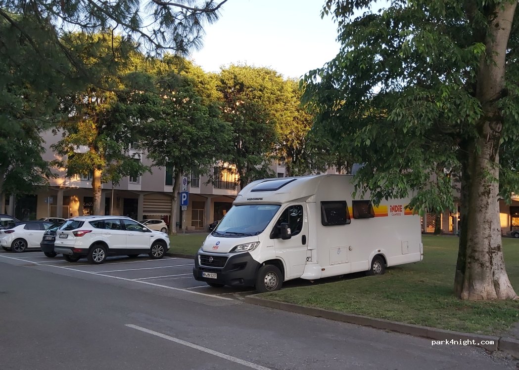 Idyllic little farm with many different animals (ponies, dogs, cats, chickens, rabbits, bees, insects of all kinds...) and a very nice host who speaks German and Englisch, has lots of good tips for the area and his mom, who likes to speak in Italian and bring apricots or blackberries. There is a mini pool to cool off in and you can rend bikes and rickshaw. The bathroom is very modern and clean. By the nearby river there is a nice beer garden with delicious foccacia. There are various small specialties to buy, such as eggs, honey, jam, wine, vinegar and olive oil. A trip to Mantua is recommended and it is half an hour from Lake Garda or Verona.You park in the field, little shade for the summer, sometimes music coming from the restaurant on the river.