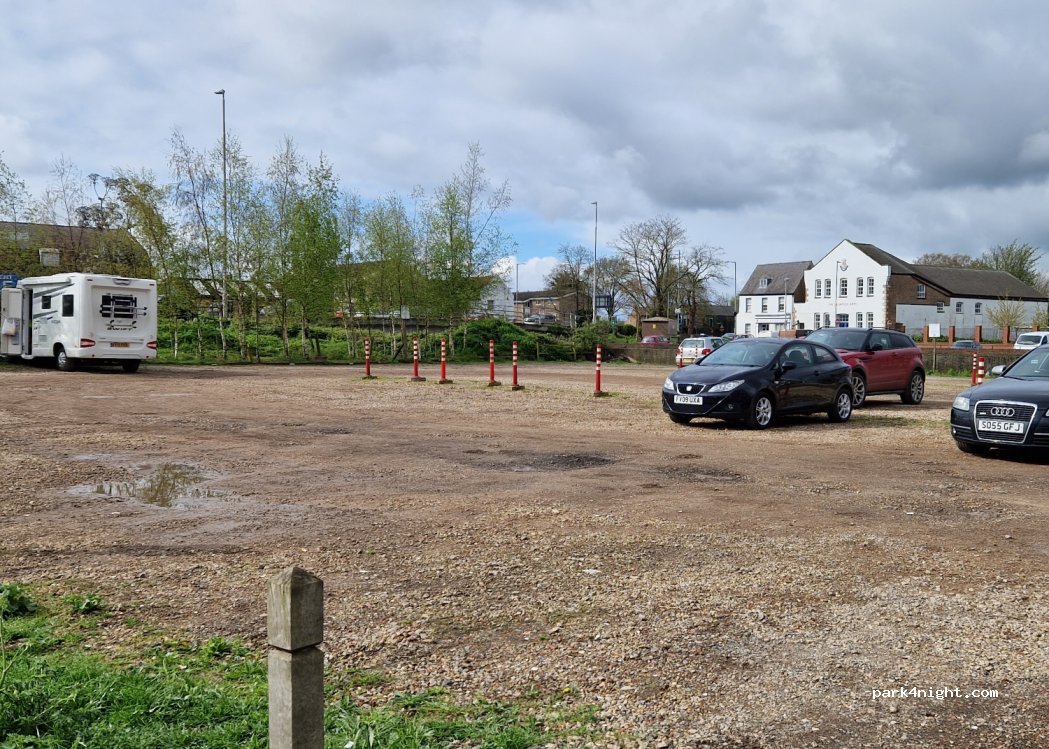 Spent one night on our way to visit friends. As others have commented the car park is by several busy roads but the traffic noise wasn't as bad as I thought it would be. Gravel is flat and we got parked in the farthest corner out of the way of others. Price of £3 (cash only ticket machine) for 24 hours is excellent. Town centre is only 5 minutes walk away.